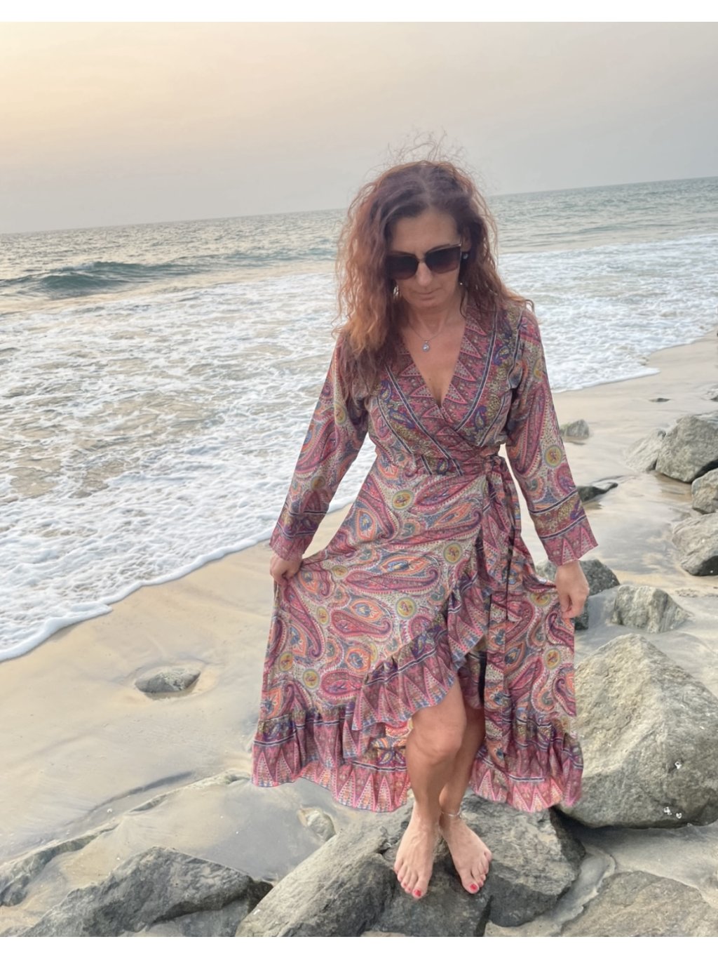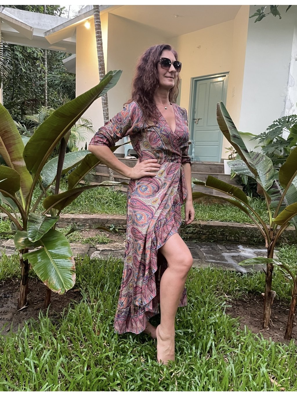 Každý kousek je vybrán s důrazem na detail a kvalitu. Naše oblečení je vyrobeno z vysoce kvalitního hedvábí, které zajišťuje nejen komfort, ale také luxusní vzhled a pocit. Díky lehkosti a jemnosti tohoto materiálu se šaty Taara skvěle nosí a dodávají vám elegantní styl, ať už je nosíte na speciální příležitosti, nebo si je obléknete na běžný den.