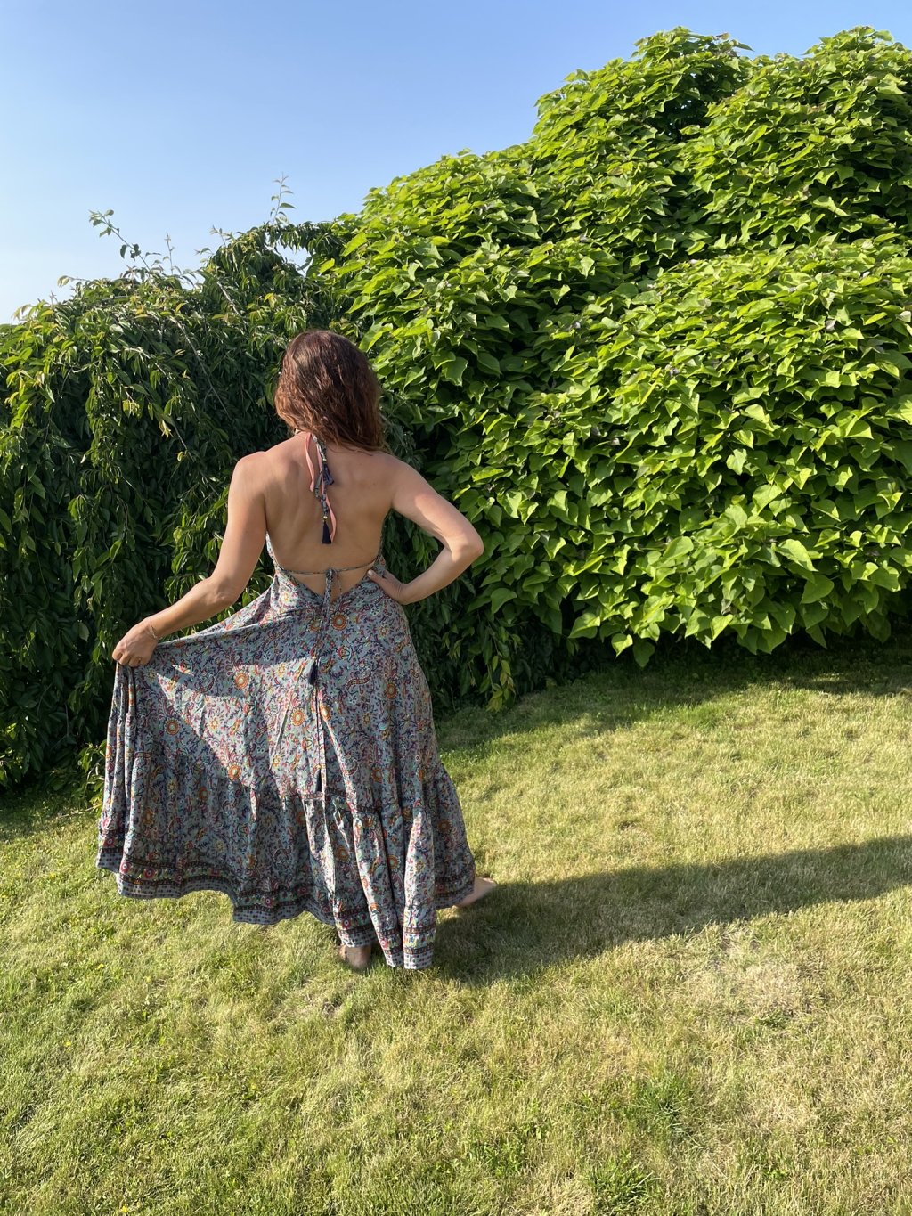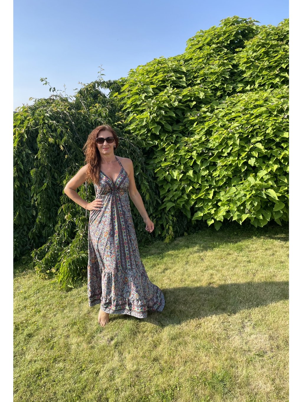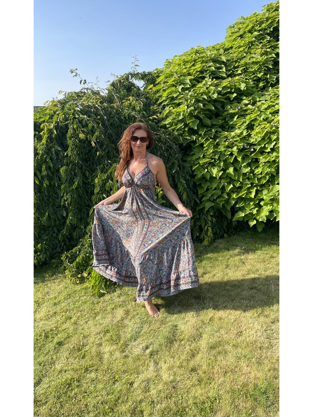 - Celková délka šatů: 124 cm + šňůrky na zavazování za krkem
