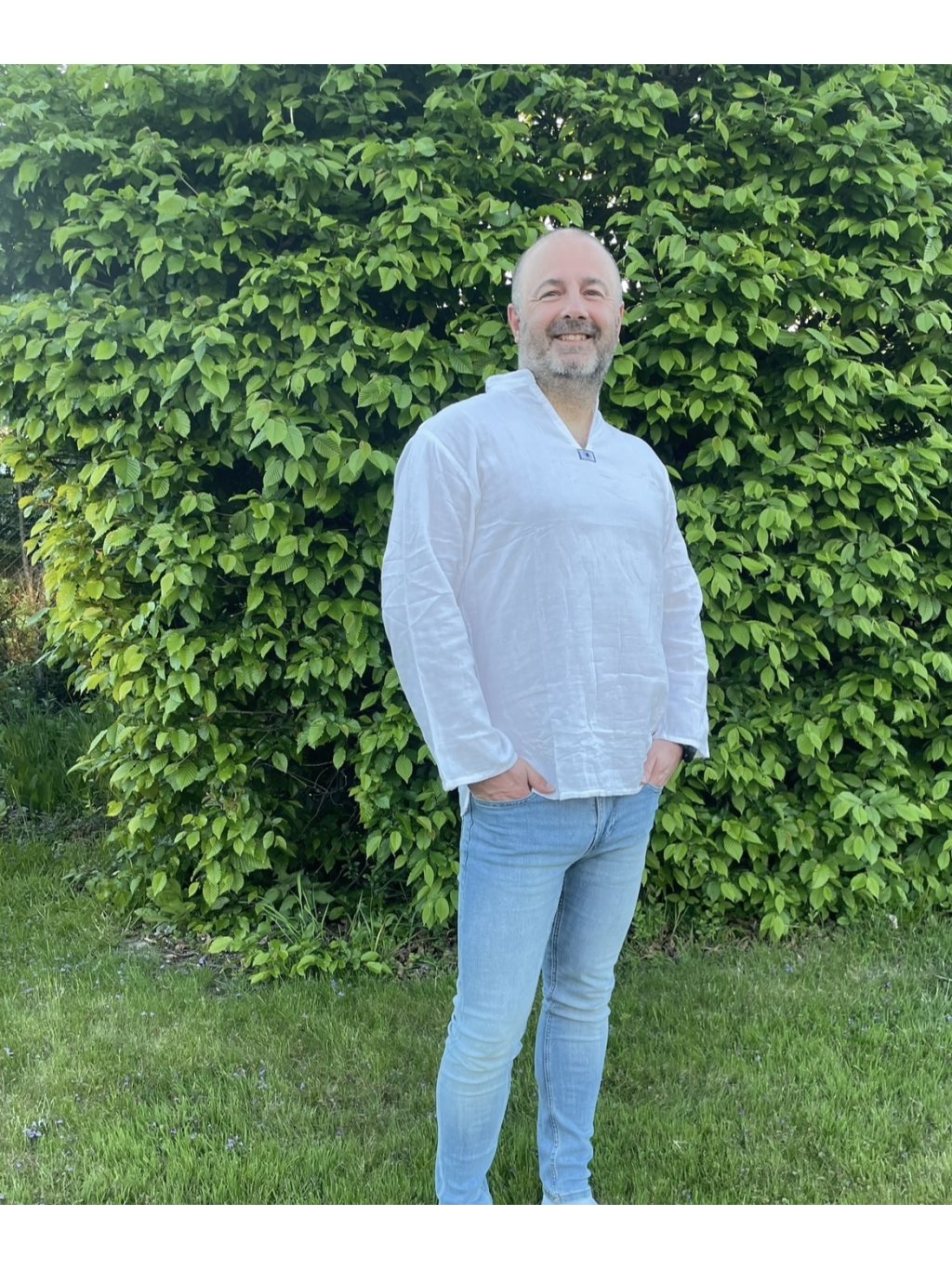 Nadčasová, bílá pánská košile s dlouhým rukávem z bavlny. Ideální také na letní dny.