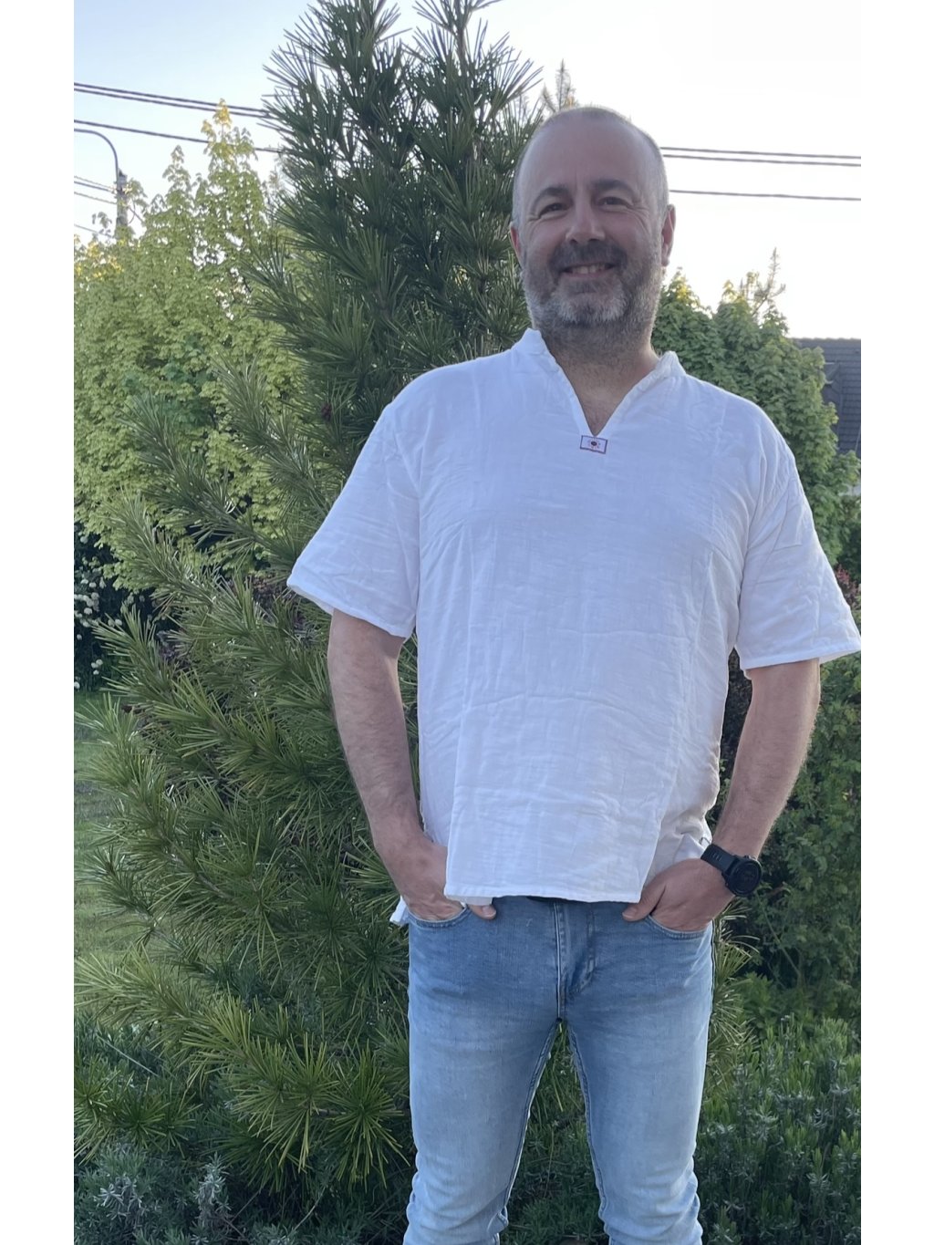 Nadčasová, bílá pánská košile s krátkým rukávem z bavlny ideální také na letní dny.