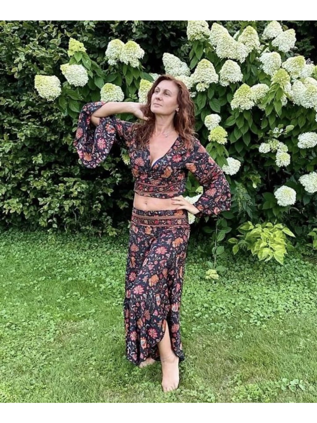 V tomto hedvábném kompletu se španělskými rukávy budete originální a nezapomenutelné. Je luxusní, elegantní a pohodlný, což z něj činí ideální volbu nejen pro letní dny.