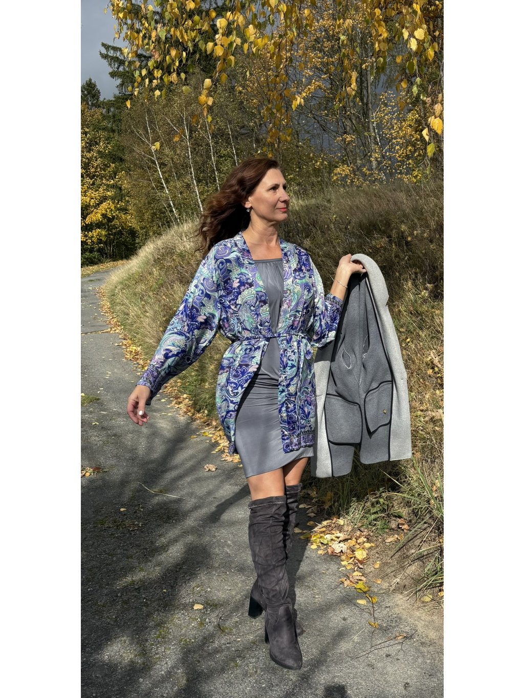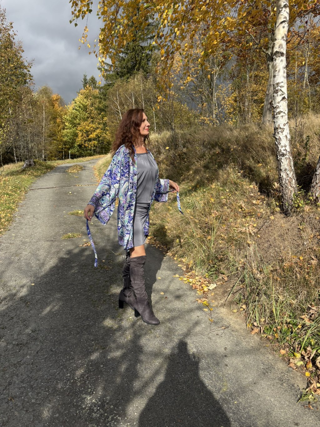 Hedvábné kimono skvěle doplní i jednoduchý, jednobarevný outfit.