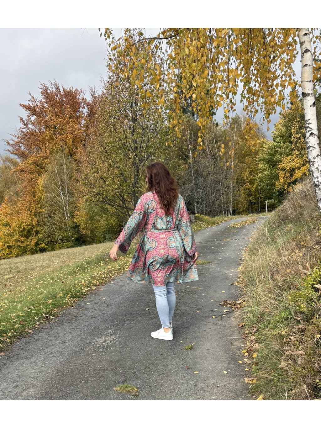 Hedvábné kimono skvěle doplní i jednoduchý, jednobarevný outfit. Můžete nosit nejen na plavky a do wellness, ale i na šaty, kalhoty s tričkem, na halenku i na kraťasy... a rázem máte stylový look. Univerzální, lehoučký a elegantní kousek, který si zamilujete.