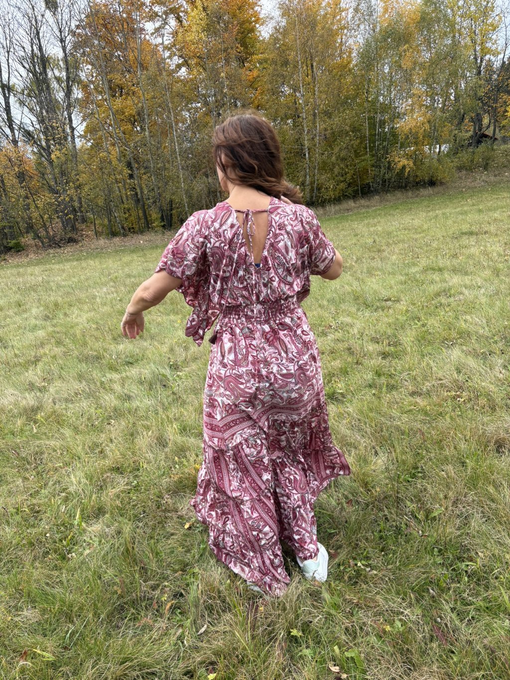 objev kouzlo podzimu a zimy v nových hedvábných šatech z Indie, které spojují tradiční indické řemeslo s elegantním moderním stylem. Šaty se krásně se přizpůsobí postavě a působí luxusně při každém pohybu. Tyto šaty nejsou jen oděvem – jsou příběhem o kráse, ženskosti a autentičnosti. Obleč se do hedvábí, které hřeje i v zimě a rozzáří tvůj podzim.