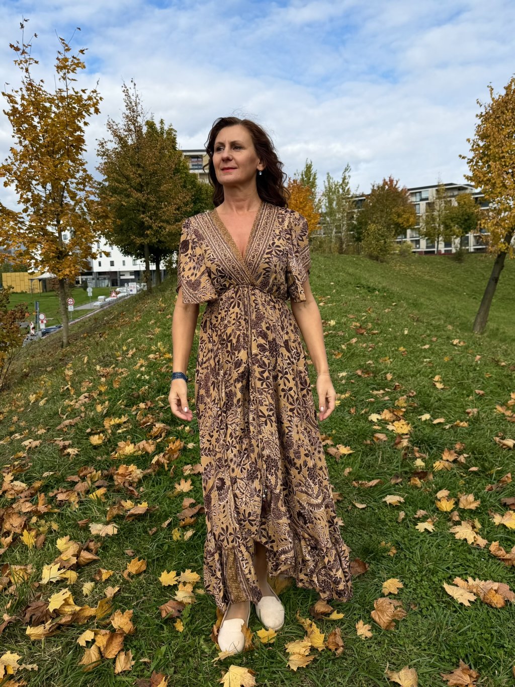 Každý kousek je vybrán s důrazem na detail a kvalitu. Naše oblečení je vyrobeno z vysoce kvalitního hedvábí, které zajišťuje nejen komfort, ale také luxusní vzhled a pocit. Díky lehkosti a jemnosti tohoto materiálu se šaty Taara skvěle nosí a dodávají vám elegantní styl, ať už je nosíte na speciální příležitosti, nebo si je obléknete na běžný den.