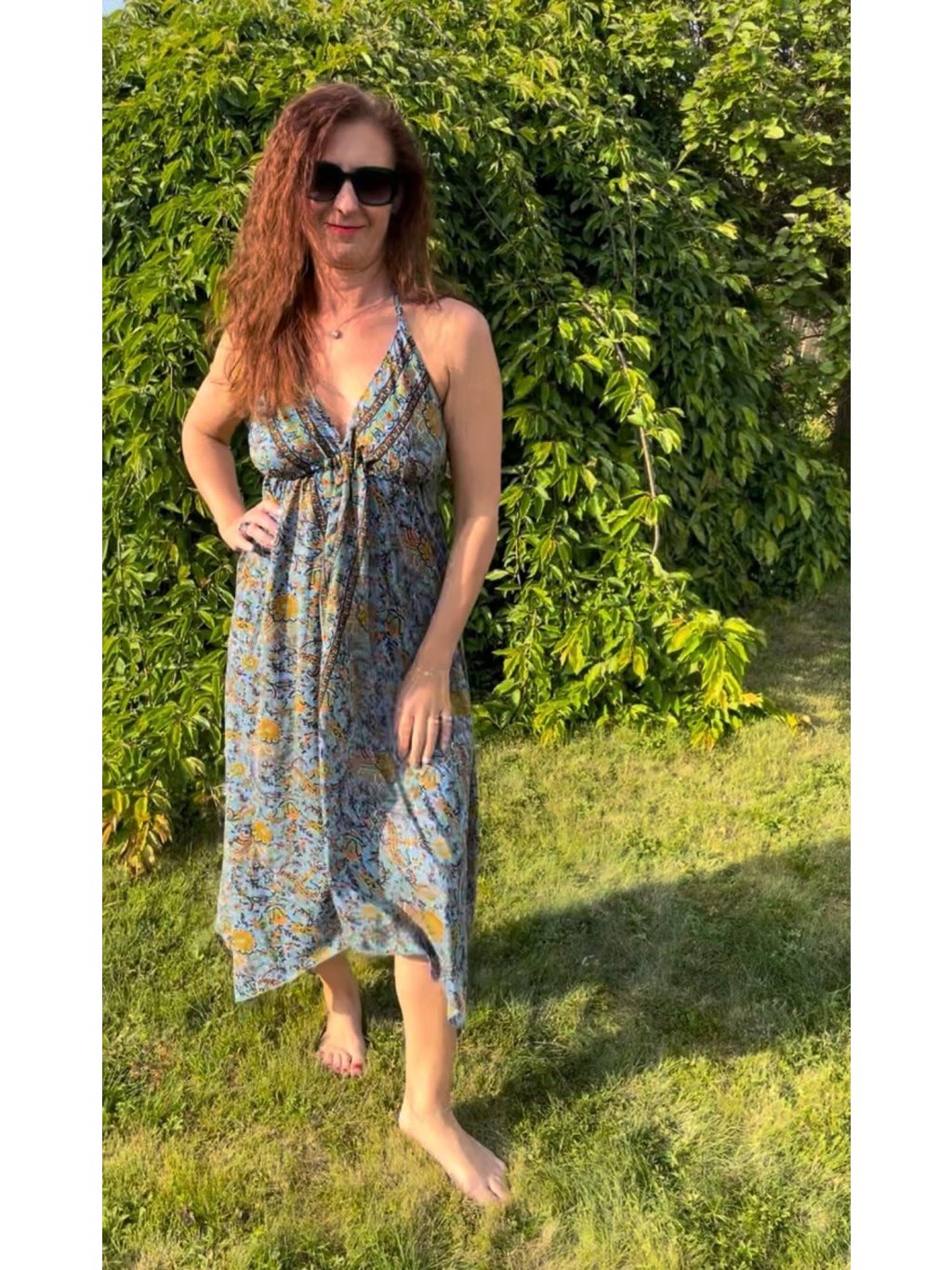 Každý kousek je vybrán s důrazem na detail a kvalitu. Naše oblečení je vyrobeno z vysoce kvalitního hedvábí, které zajišťuje nejen komfort, ale také luxusní vzhled a pocit. Díky lehkosti a jemnosti tohoto materiálu se šaty Taara skvěle nosí a dodávají vám elegantní styl, ať už je nosíte na speciální příležitosti, nebo si je obléknete na běžný den.