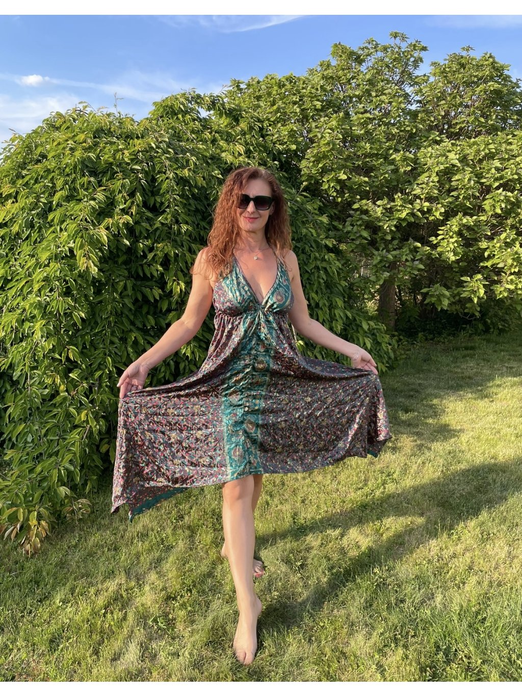 Každý kousek je vybrán s důrazem na detail a kvalitu. Naše oblečení je vyrobeno z vysoce kvalitního hedvábí, které zajišťuje nejen komfort, ale také luxusní vzhled a pocit. Díky lehkosti a jemnosti tohoto materiálu se šaty Taara skvěle nosí a dodávají vám elegantní styl, ať už je nosíte na speciální příležitosti, nebo si je obléknete na běžný den.